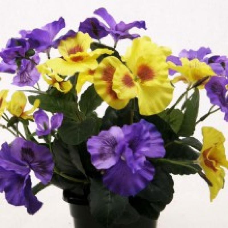 Pensées artificielles en pot très colorée et parfaitement imitée fleurira votre intérieur. Sur un meuble, une table ou une commode, cette plante fleurie trouve sa place partout.